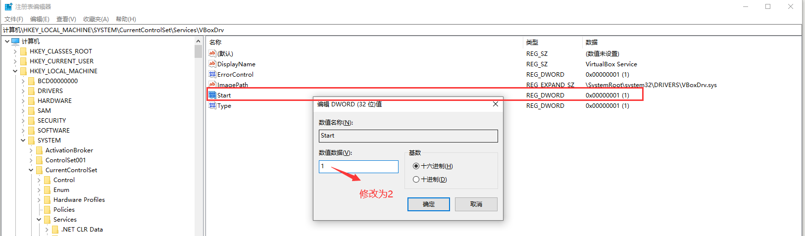 WAIT_HINT : 0x0打开注册表,找到 计算机\HKEY_LOCAL_MACHINE\SYSTEM\CurrentControlSet\Services\VBoxDrv 路径。